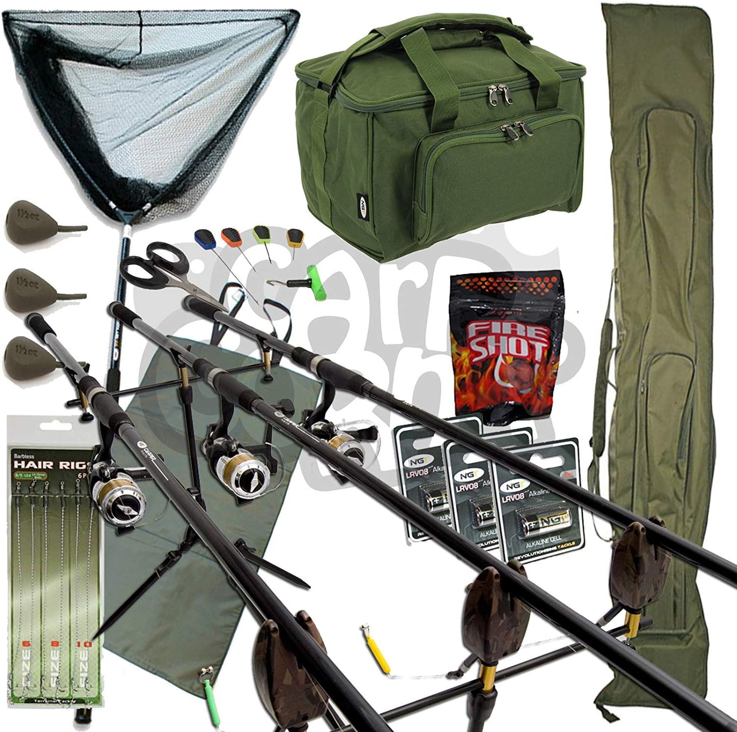 Komplettes Karpfen-Angelset mit 3Ruten mit Spule, Tragetasche und Ausrüstung